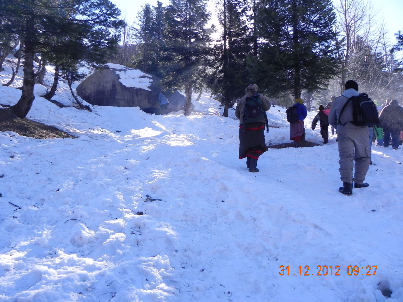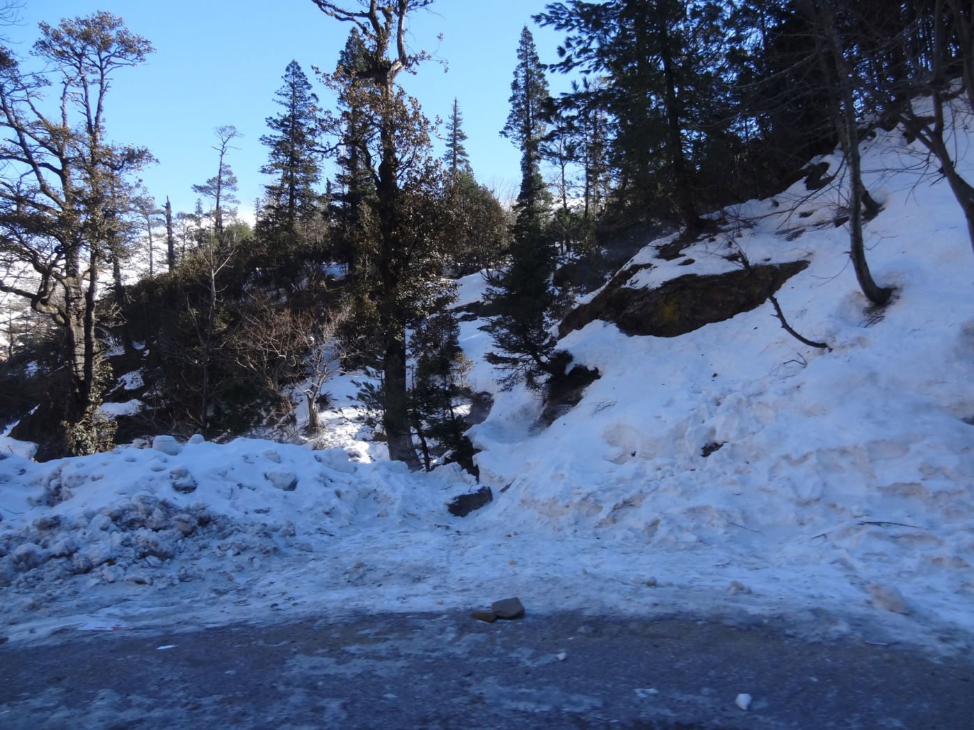 Today we had a spectacular drive  toRohtang Road Snow Point. We have free time to play in the snow and click pictures to our heart’s content. Rohtang pass is 51 kms away from Manali. This Pass is not accessible for almost 8 months in a year, as it is covered by snow. Tourists  generally visit the snow point on Rohtang road, which has been permitted by the Border Security Force. Snow clothes, jackets and gum boots are available on rent in the shops located on Rohtang Road.