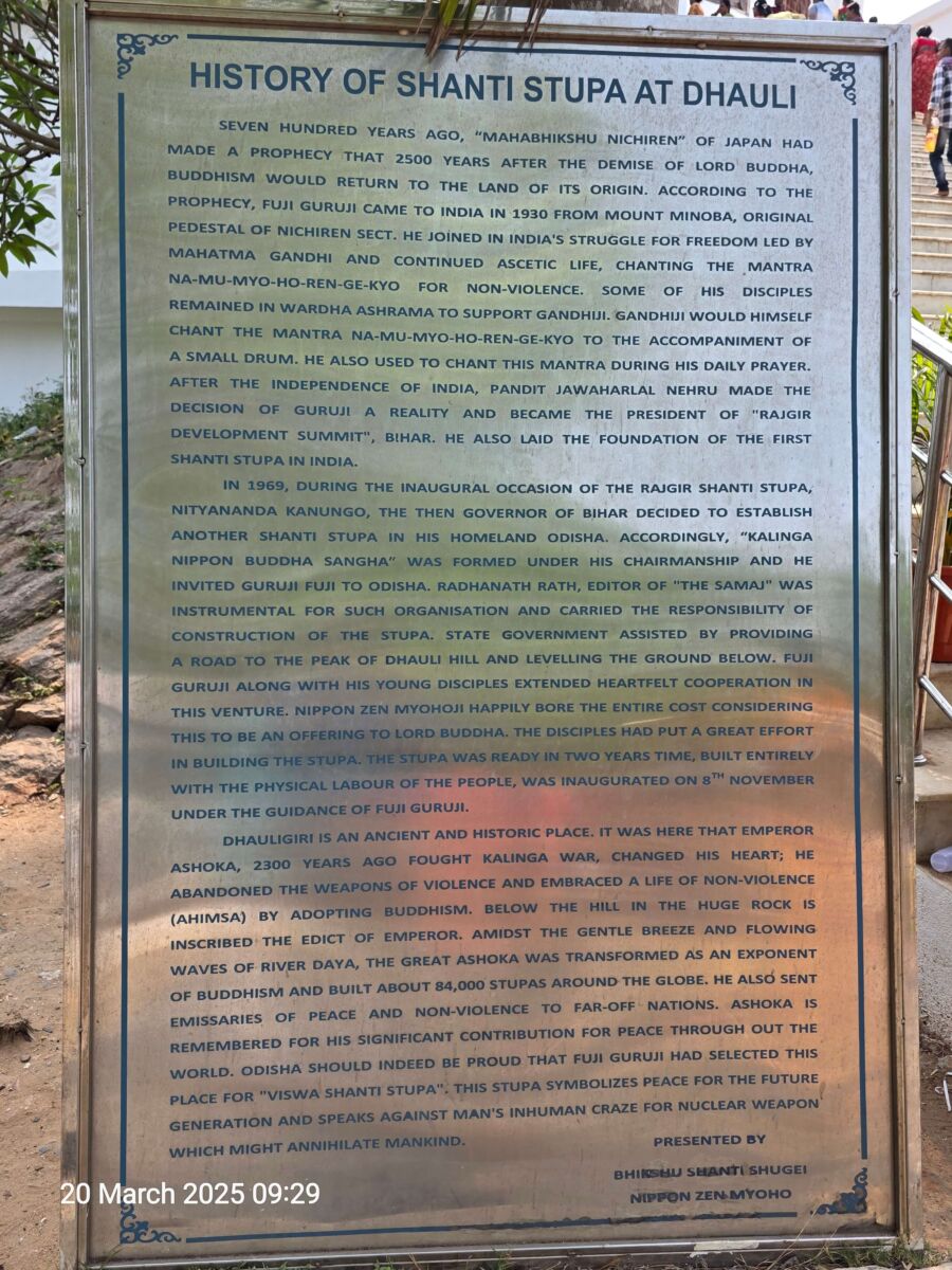 Shanti Stupa of Dhauligiri is also known as the Peace Pagda. Dhauligiri lies at a distance of 7 Km from Bhubaneswar. As one travels from Bhubaneswar to Puri, one finds Shanti Stupa. The word ‘shanti’ in the name itself suggests peace. Since King Ashoka adopted the path of peace and tranquility and resorted to Buddhism, he laid the foundation of Dhauligiri Shanti Stupa at a place which is known for the end of Kalinga War. Here, one finds the edict of Lord Budddha which is visited by numerous Buddhist devotees.The overall structure of the stupa is in the shape of a dome. One can spot the Buddha footprints as well as the Bodhi tree over the stone panels. Over the panels, one also spots the image of Ashoka who keeps his sword of war in front of Lord Buddha suggesting that he had given up the idea of war completely. In the vicinity of this stupa, there lays a monastery named as the SaddharmaVihar Monastery, which is much visited by the Buddhist devotees. And at a short distance from the Shanti Stupa, you find the temple of Dhavaleshwar that was renovated in the year 1972 and is much frequented by Hindu as well as Buddhist devotees.